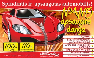 Nano apsauginė danga! Plovimas +Kelio apnašų(smalos) valymas nuo kėbulo +Apsauginė Nano danga ant kėbulo +Nano danga ant stiklų +Ratlankių valymas +Padangų juodinimas 100€ (lengvieji) / 110€ (minivenai,visureigiai)...